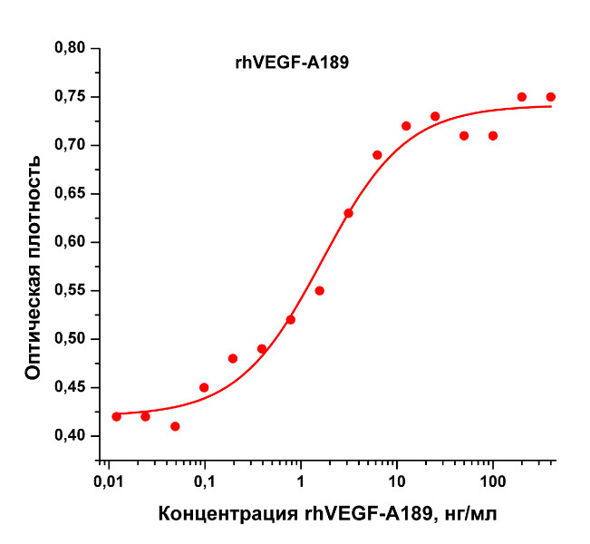 Рекомбинантный белок rhVEGF-A189 человека стимулирует пролиферацию клеток эндотелия пупочной вены человека (HUVEC). ED50 для данного эффекта обычно 1,2 - 2 нг/мл. Оптимальная концентрация для индивидуального применения определятся пользователем.
