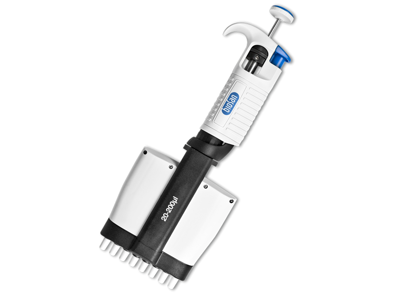 Многоканальные (8 и 12 каналов) пипетки выпускаются в четырёх диапазонах устанавливаемого объёма от 0,5 до 10 мкл, от 5 до 10 мкл, от 20 до 200 мкл или от 20 до 300 мкл.