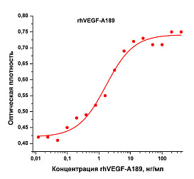 Форма выпуска фактора роста эндотелия сосудов-А человека, изоформы 189 (рекомбинантный белок), rhVEGF-A189Лиофильно высушен из буферного раствора PBS, содержащего 0,05% Tween 20, pH 7,0, профильтрованного через фильтр с диаметром пор 0,22 мкм. Применение фактора роста эндотелия сосудов-А человека, изоформы 189 (рекомбинантный белок), rhVEGF-A189Рекомбинантный белок rhVEGF-A189 человека стимулирует пролиферацию клеток эндотелия пупочной вены человека (HUVEC). ED50 для данного эффекта обычно 1,2 - 2 нг/мл. Оптимальная концентрация для индивидуального применения определятся пользователем. Разведение фактора роста эндотелия сосудов-А человека, изоформы 189 (рекомбинантный белок), rhVEGF-A189Центрифугировать флакон при 1000 rpm, 3 мин; добавить стерильный буферный раствор (PBS) до конечной концентрации 0,1-1 мкг/мкл; оставить на 20-30 мин при комнатной температуре, затем центрифугировать при 1000 rpm в течение 1 мин, и мягко ресуспендировать. Для приготовления рабочих растворов можно использовать буфер на водной основе или культуральную среду. Добавление вспомогательных белков (BSA или FBS) не является необходимым. Условия хранения и транспортировки фактора роста эндотелия сосудов-А человека, изоформы 189 (рекомбинантный белок), rhVEGF-A189Стабильность и условия хранения: