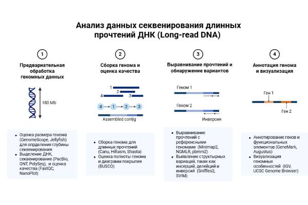• Технологии секвенирования длинными прочтениями позволяют эффективно анализировать геномные регионы, остающиеся труднодоступными для платформ секвенирования коротких фрагментов. В их числе — сложные повторы, гомополимерные последовательности, регионы с высокой структурной вариабельностью, а также выявление крупных хромосомных перестроек, слияний и инверсий. Эти особенности критически важны при диагностике генетических заболеваний, обусловленных структурными вариациями, таких как некоторые формы нейромышечных, онкогенных и наследственных заболеваний