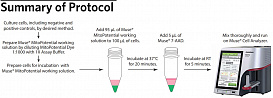 Набор позволяет количественно измерить одновременно два параметра клеточного здоровья: деполяризацию мембран митохондрий (считается ранним признаком апоптоза) и клеточную гибель (по проникновению в клетки 7-AAD). Протокол без этапов отмывки клеток от реагентов позволяет быстро получить статистически надежные результаты по процентному соотношению и концентрации клеток: живых, с деполяризованной митохондриальной мембраной, на стадии позднего апоптоза (с деполяризованной митохондриальной и поврежденной цитоплазматической мембранами) и мертвых.