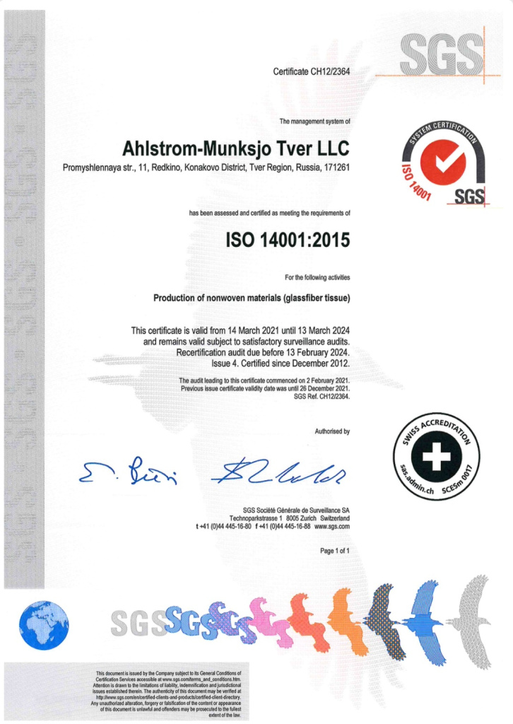 Сейчас Ahlstrom занимает уникальное положение мирового лидера в производстве широкого спектра экологически чистых и технически совершенных особенных материалов, в основе которых находится волокно. На данный момент охватывает пять растущих и отличающихся друг от друга конечных направлений: фильтрация, упаковка в пищевой промышленности, строительные и технические материалы, здравоохранение. Экологичность, инновации и качество на данный момент занимают центральное место во всех решениях компании.