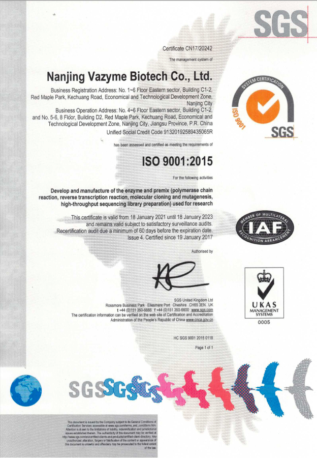 Компания Vazyme является глобальным производителем и поставщиком ферментов, реагентов для работы с нуклеиновыми кислотами, в том числе для подготовки NGS-библиотек, реагентов для клеточной биологии, лабораторного оборудования и расходного пластика. Бизнес предприятия посвящен проектированию, производству и применению биологически активных веществ; производитель постоянно расширяет области применения технологий в области Life Science, диагностики in vitro, биомедицины и других отраслях.